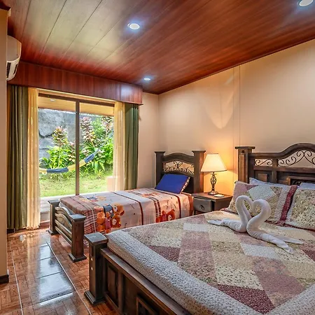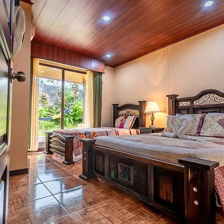 庭園の景色を望む部屋10室のAunty Arenal Lodge ラ・フォルトゥナは、Arenal Oasis Wildlife Refugeからたった550メートル離れたところに位置しています。 チャト火山から車で10分以内位置し、ヴィラはWiFiと駐車場を提供しています。